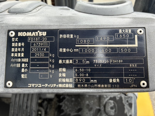 コマツ 1.5t フォークリフト 2011 y